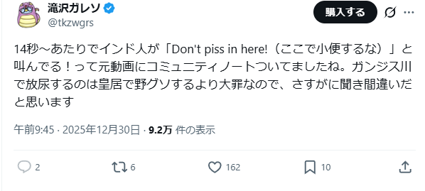 また、確実ではない情報としてガンジス川に放尿した可能性もみられています。
