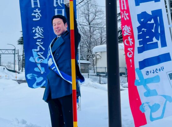 - 地元街頭・イベント: 長岡市を中心に毎週街頭演説、南魚沼(塩沢・六日町・浦佐)や小千谷の岩沢朝市を回り、夫婦で参加。朝市では「元知事が来た」と驚きの声も。